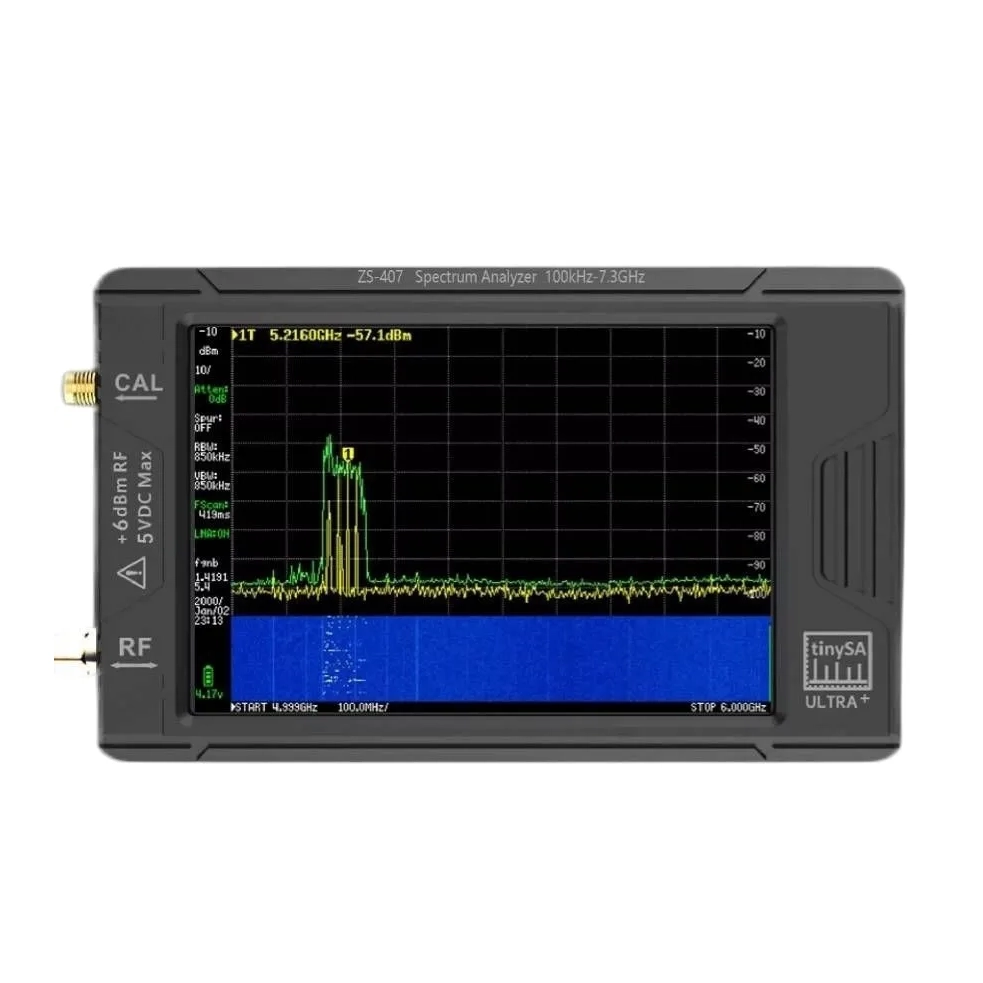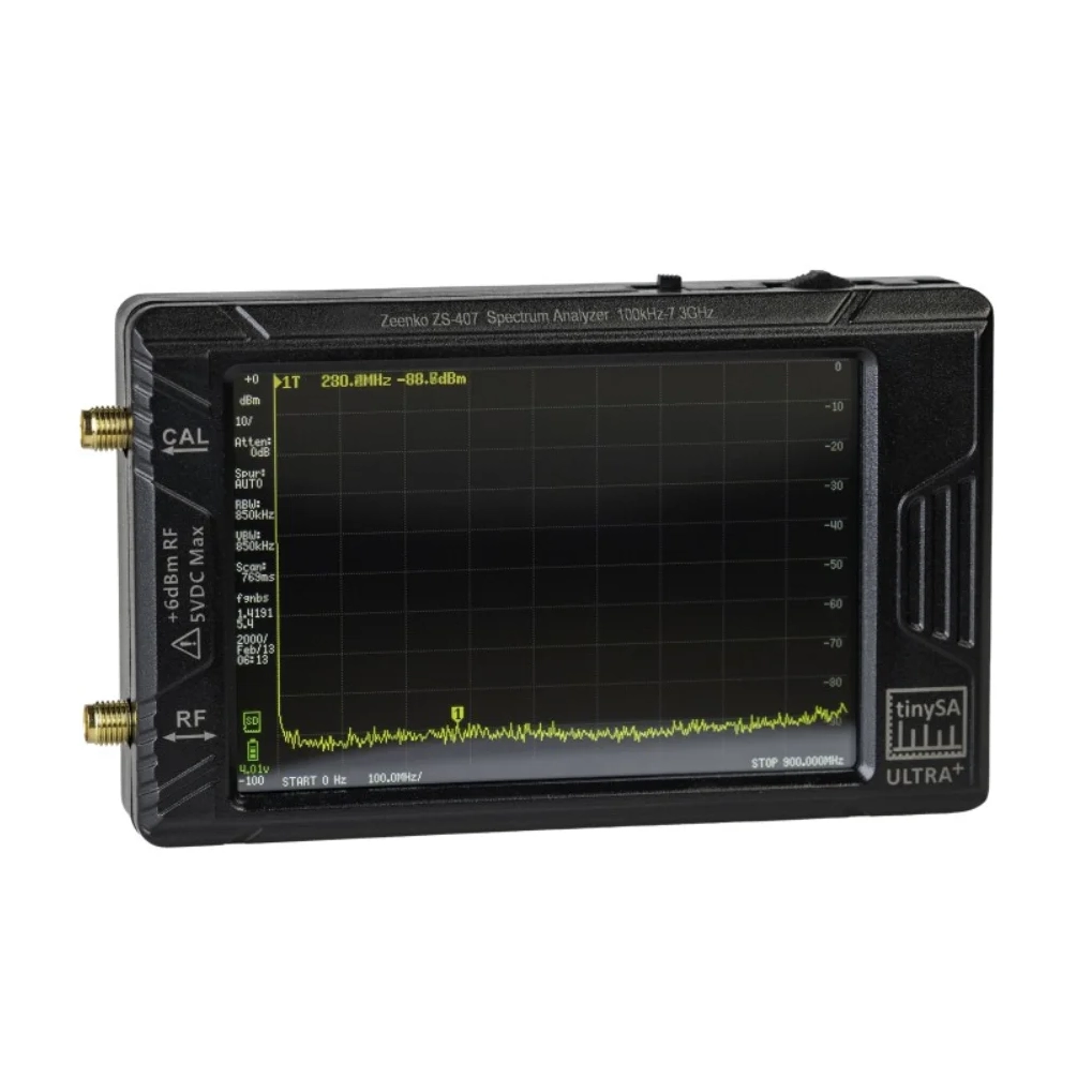 Аналізатор спектру TinySA Ultra+ ZS407 – компактний вимірювальний прилад для FPV та радіоелектроніки. Цей прилад призначений для вимірювання амплітуди електричних сигналів та їх візуалізації в частотній області. Модель Ultra працює в діапазоні до 5,3 ГГц, а версія Ultra+ ZS407 розширює діапазон до 7,3 ГГц для аналізу FPV обладнання, відеопередавачів та приймачів.